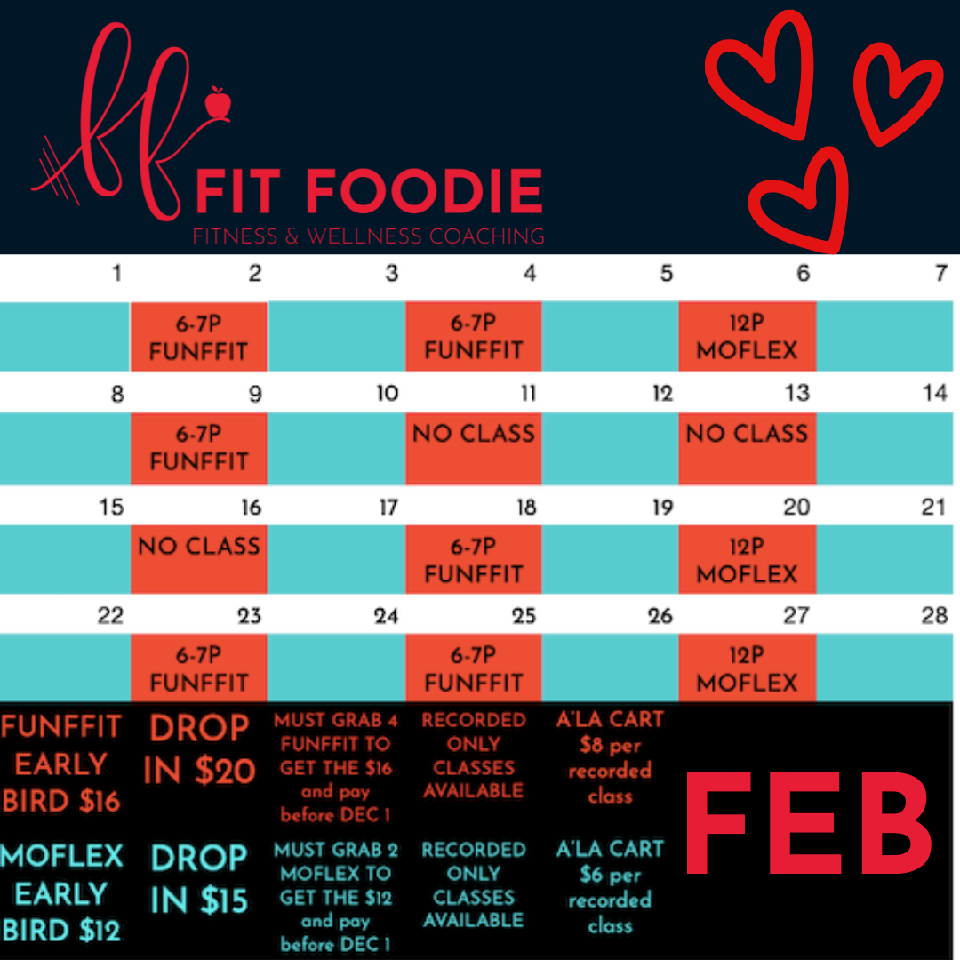 *Currently all classes are hybrid with an option to join the group in person or online along with access to FFIT SHACK where you will find recorded classes.